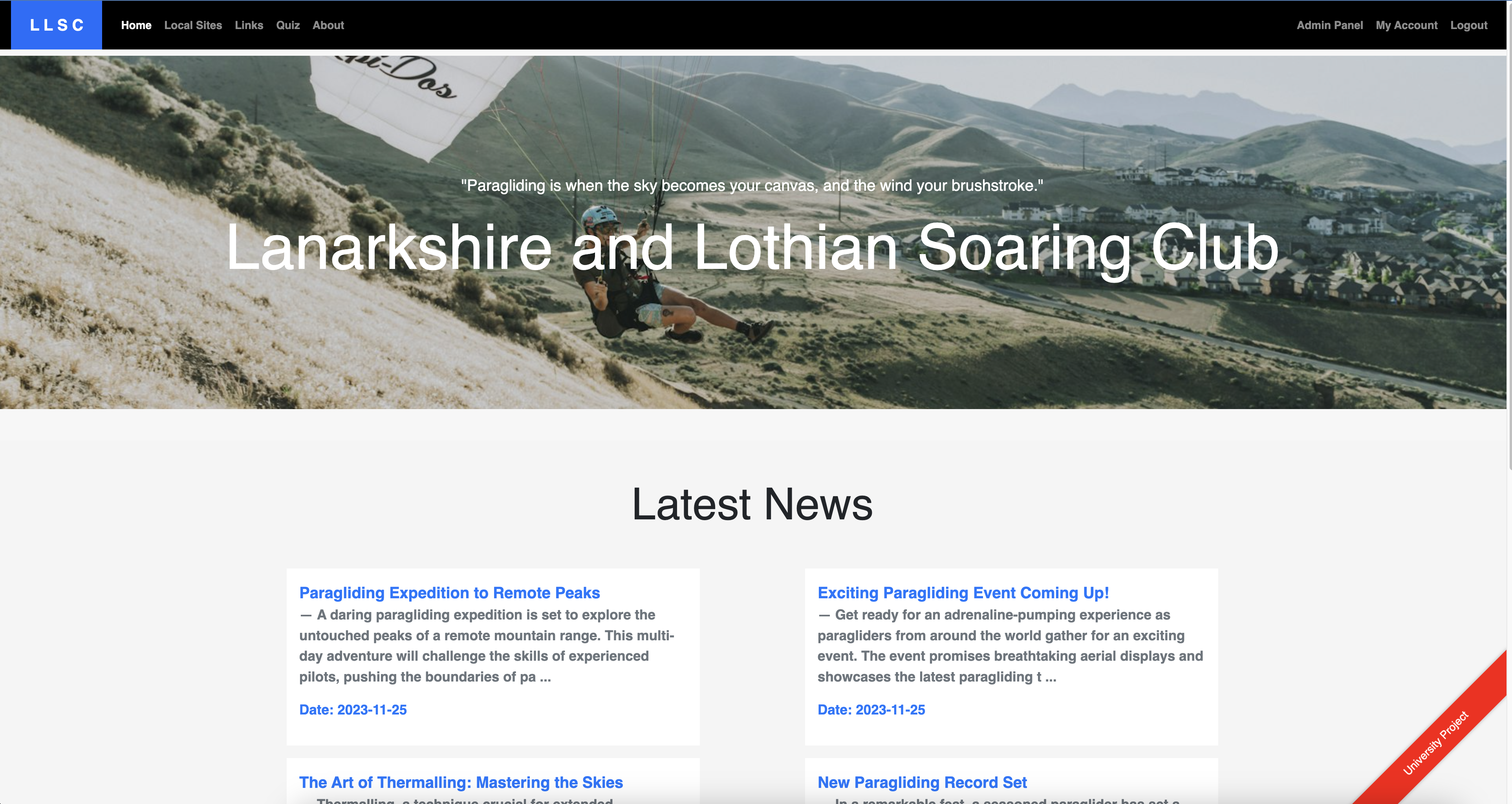 Complete club website with integrated weather forecasting, member login system, and admin panel scoring 75/100.